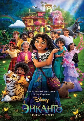 «Энканто» — полнометражный анимационный фильм для семейного просмотра, который быстро стал одним из самых обсуждаемых проектов Disney начала двадцатых годов. Картина получила широкое признание за визуальный стиль, музыку и честный разговор о семейных ожиданиях, ответственности и праве быть собой. Фильм отмечен премией «Оскар» за лучший анимационный полнометражный фильм, а песни из саундтрека стали вирусными и закрепили успех у мировой аудитории. Сегодня «Энканто» доступен на цифровых платформах и в домашнем формате, подходит для просмотра с детьми и хорошо работает как музыкальная сказка и как тёплая история о примирении и взаимопонимании.